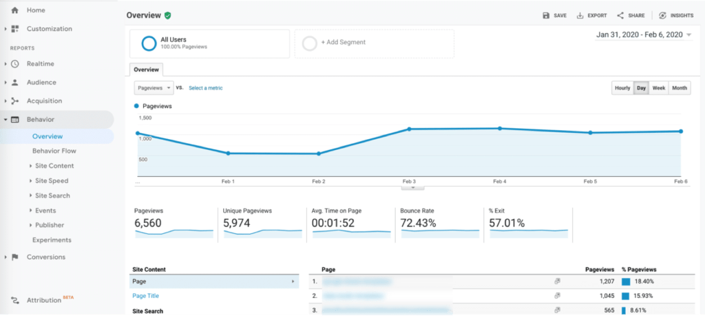 Attraverso questa area è possibile valutare il comportamento di navigazione dei visitatori attraverso diversi parametri che indicano il numero di pagine visitate, la frequenza di visita, il tempo trascorso sul sito, le pagine più visitate e tanti altri.
